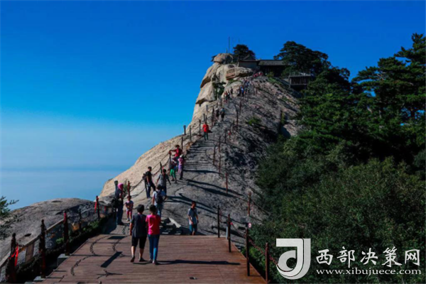 華山是我國著名的五岳之一,不但是五岳最險,還是五岳最高的山。其雄偉奇險,山勢峻峭,東、南、西三峰拔地而起,如刀一次削就,壁立千仞,群峰挺秀,以險峻稱雄于世,自古以來就有“華山天下險”“奇險天下第一山”的說法。由于華山太險,魏晉南北朝時,還沒有通向華山頂峰的道路。直到唐朝,隨著道教興盛,道徒開始居山建觀,逐漸在北坡沿溪谷而上開鑿了一條險道,形成了“自古華山一條路”。