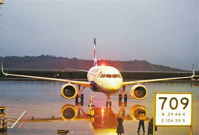 2018年12月30日凌晨,利用中新(重慶)互聯(lián)互通項(xiàng)目和自由貿(mào)易疊加優(yōu)勢,重慶航空引進(jìn)的第五架空客A320neo飛機(jī)抵達(dá)江北國際機(jī)場。 (重慶航空供圖)