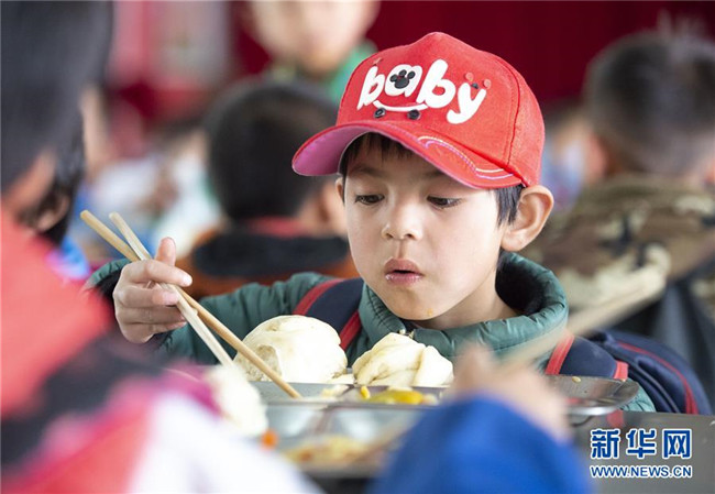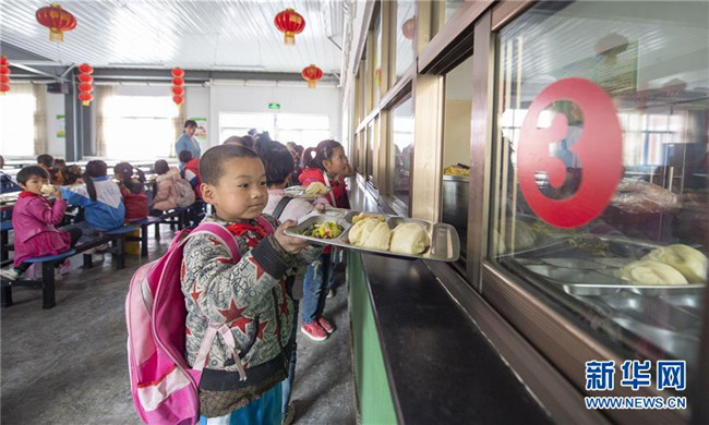 自實施農(nóng)村義務(wù)教育學生營養(yǎng)改善計劃以來,寧夏回族自治區(qū)積極為農(nóng)村學子提供免費的營養(yǎng)餐。從去年開始,寧夏固原市西吉縣的免費營養(yǎng)午餐迎來了升級換代,從原來的一道燴菜變成了如今的兩素一葷,餐具由餐桶換成了餐盤。在保證營養(yǎng)膳食搭配的同時,增加了學生的自主選擇性。從“吃得飽”到“吃得好”,升級換代的營養(yǎng)餐得到了廣大學生認可。 新華社發(fā)(楊植森 攝)