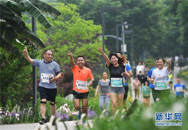 選手在重慶照母山森林公園參加重慶市第二屆“超越杯”山地迷你馬拉松比賽(2018年4月21日攝)。 新華社記者 王全超 攝