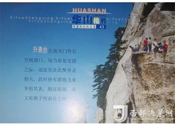 仰天池、洞里甕、全真崖、升表臺(tái),以上就是華山四大謎,帶大家游覽了一番,您覺(jué)得有更好的解釋嗎?如果有可以給我們留言,讓我們大家共同探索華山的未解之謎,用彩筆為華山之謎畫(huà)下最美的謎底吧!(供稿:華旅集團(tuán)營(yíng)銷(xiāo)中心)