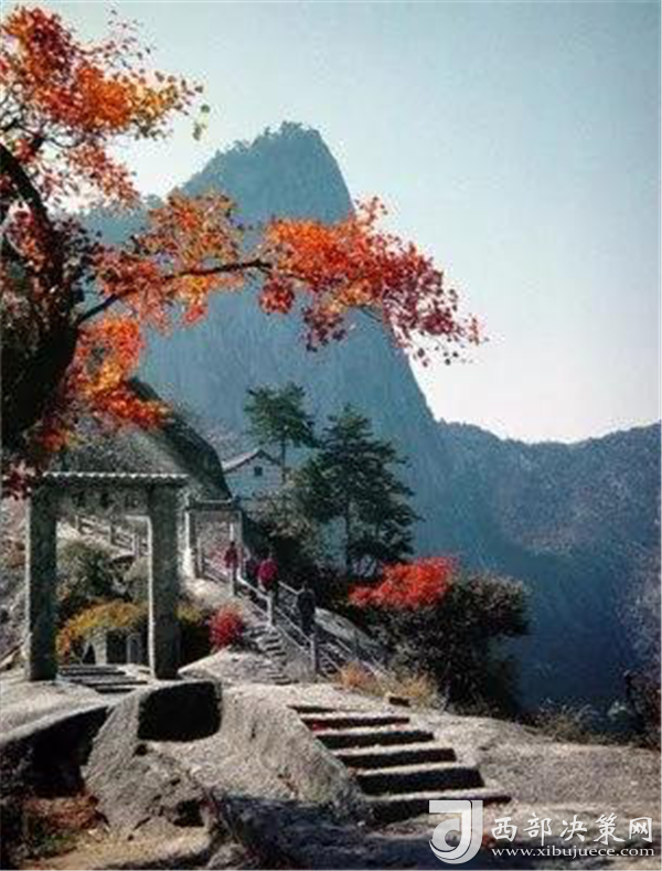峰北臨白云峰,東近量掌山,上通東西南三峰,下接溝幢峽危道,峰頭是由幾組巨石拼接,渾然天成。絕頂處有平臺(tái),原建有倚云亭,現(xiàn)留有遺址,是南望華山三峰是蒼龍嶺的好地方。峰腰松樹常青,秀氣充盈,是攀登華山絕頂途中理想的休息場(chǎng)所。