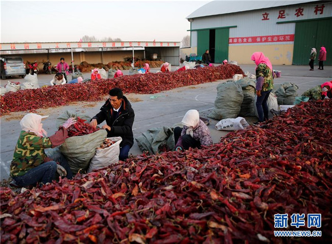 初冬時節(jié),甘肅省金昌市永昌縣水源鎮(zhèn)的村民們利用農閑來到附近的辣椒加工廠打工,在家門口就業(yè)增收,每位村民每天可以增加100元左右的收入。