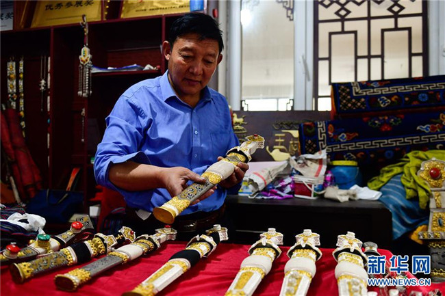 青海省玉樹藏族自治州的芒擦藏刀工藝距今已有上百年歷史。煅制芒擦藏刀需要特殊的材料、具備精湛的技藝,常用到金、銀、紅銅、黃銅、木材、鐵、牛角等材料,煅制工藝復雜。芒擦藏刀樣式精美,受到海內外游客歡迎。