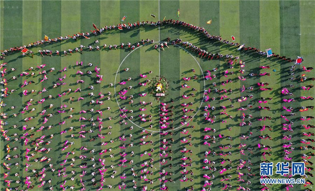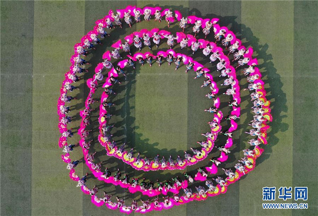 11月23日,當(dāng)?shù)厝罕娫谔J笙斗馬節(jié)開幕式上表演民族歌舞(無人機拍攝)。