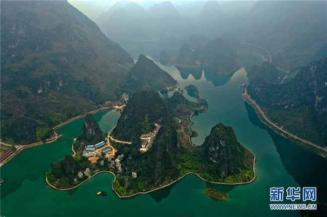 這是廣西凌云縣浩坤湖景區(qū)風(fēng)光(11月24日無人機(jī)拍攝)。新華社記者張愛林