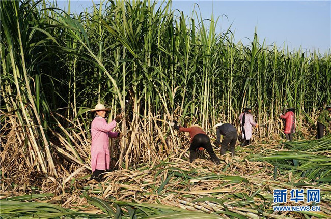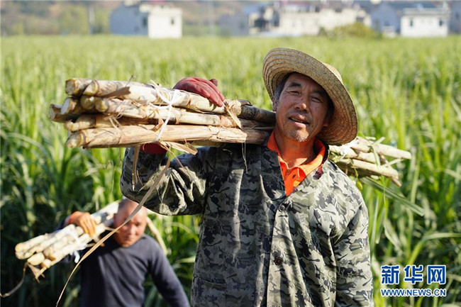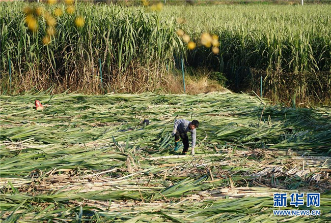 12月3日,漢濱區(qū)五里鎮(zhèn)張營村村民在甘蔗地里采收甘蔗。新華社記者 邵瑞 攝