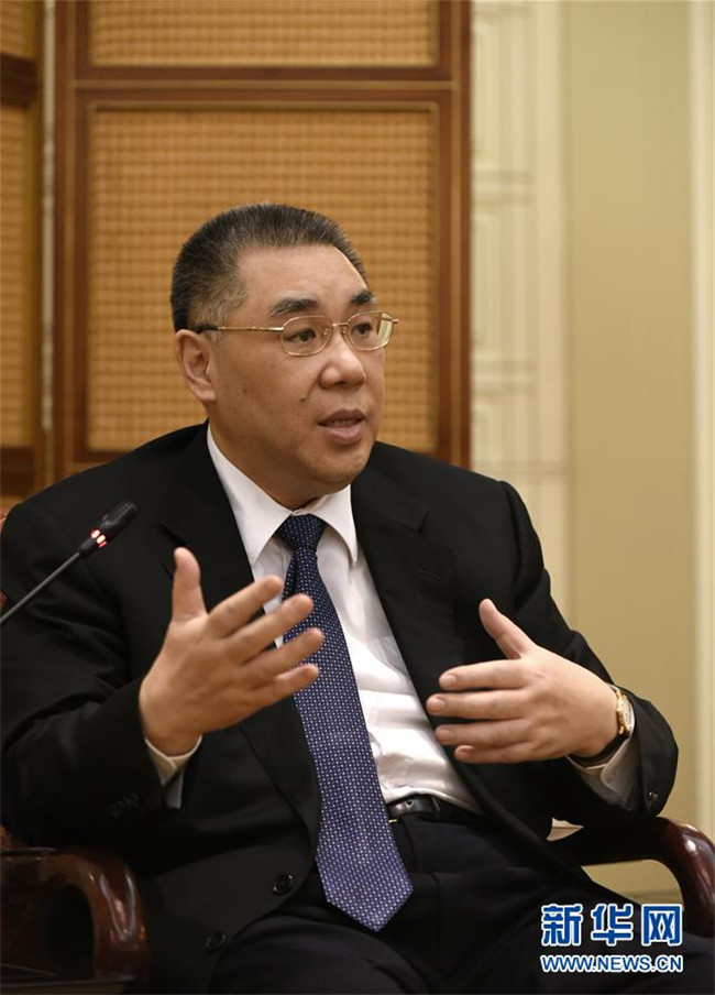 澳門特區(qū)行政長官崔世安在澳門特區(qū)政府總部接受采訪(11月21日攝)。新華社記者 徐亮 攝