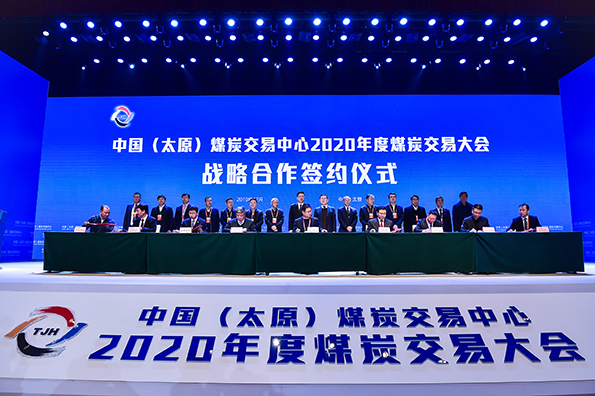 開幕式上,中國(太原)煤炭交易中心組織山西省屬五大重點(diǎn)煤炭企業(yè)集團(tuán)、晉能集團(tuán)、山煤集團(tuán)等14家企業(yè)簽訂山西省2020年度煤炭中長期協(xié)議。交易中心分別與朔州市人民政府、山煤集團(tuán)、內(nèi)蒙古巴彥淖爾市甘其毛都口岸管理委員會、河北唐山市曹妃甸區(qū)人民政府、江蘇徐州港務(wù)(集團(tuán))有限公司共5家單位簽訂一系列戰(zhàn)略合作協(xié)議。