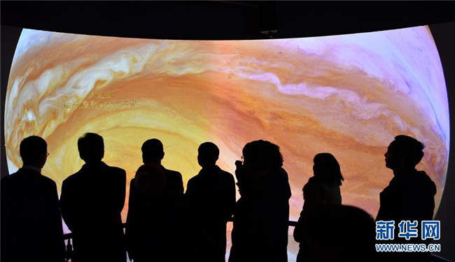 12月14日,觀眾參觀藏域星球天文科普體驗館。當日,藏域星球天文科普體驗館在西藏拉薩開館試運營,這是西藏第一家天文科普體驗館。據(jù)介紹,此館以感知宇宙、認知宇宙、探索宇宙為主題,以參觀者的第一感官體驗為設(shè)計導向,利用互動投影、懸浮投影、物體跟蹤、人體捕捉、體感互動、VR等高科技手段展示藏地的神秘,揭示宇宙的奧秘。新華社記者李鑫攝