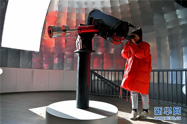 12月14日,參觀者在藏域星球天文科普體驗館體驗天文望遠鏡觀測。當日,藏域星球天文科普體驗館在西藏拉薩開館試運營,這是西藏第一家天文科普體驗館。據(jù)介紹,此館以感知宇宙、認知宇宙、探索宇宙為主題,以參觀者的第一感官體驗為設(shè)計導向,利用互動投影、懸浮投影、物體跟蹤、人體捕捉、體感互動、VR等高科技手段展示藏地的神秘,揭示宇宙的奧秘。新華社記者李鑫攝