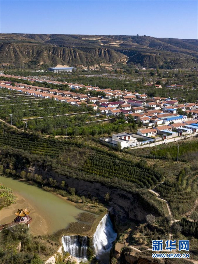 流經(jīng)寧夏固原市彭陽(yáng)縣城陽(yáng)鄉(xiāng)的茹河,因地殼變化和河床運(yùn)動(dòng)形成旱塬上的瀑布,當(dāng)?shù)匾源税l(fā)展鄉(xiāng)村旅游(10月12日無(wú)人機(jī)拍攝)。 新華社記者 馮開(kāi)華 攝