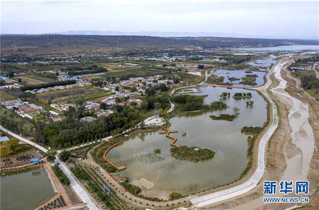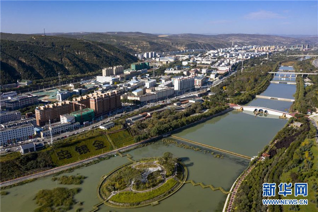 經(jīng)過(guò)綜合治理后的茹河成為寧夏固原市彭陽(yáng)縣的一道新風(fēng)景(10月12日無(wú)人機(jī)拍攝)。 新華社記者 馮開(kāi)華 攝