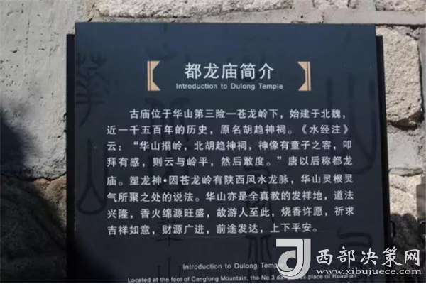 廟始建時稱胡趨神寺?!端?jīng)注》記述:“化山搦嶺,北胡趨寺,神像有童子之容。祠祀有感,則云與之平,然后敢度”。清以后,廟被俗稱為都龍廟,又作督龍廟,廟內(nèi)塑像為龍君,怒目圓睜,須髭飄冉,形象生動威武。廟的更名大凡與清乾隆時陜西巡撫畢沅開鑿蒼龍嶺道路、傷了龍脈的傳說有關(guān)。據(jù)民間傳,自畢沅開路傷龍脈后,蒼龍再無力行云布雨以護農(nóng)桑,百姓便塑像祭奉香火以示懺悔,祈請并督促蒼龍病體康復(fù),佑百姓豐年太平。(供稿:華旅集團營銷中心)