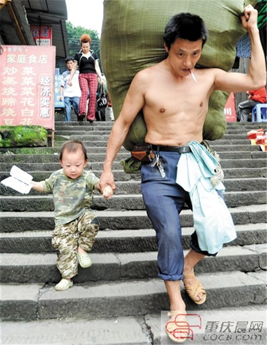 十年前,攝影師許康平在朝天門為“棒棒”冉光輝父子拍下一張合影,無(wú)數(shù)中國(guó)人記住了這張照片,以及照片配發(fā)的幾句話:肩上扛著的是家庭,手上牽著的是希望。