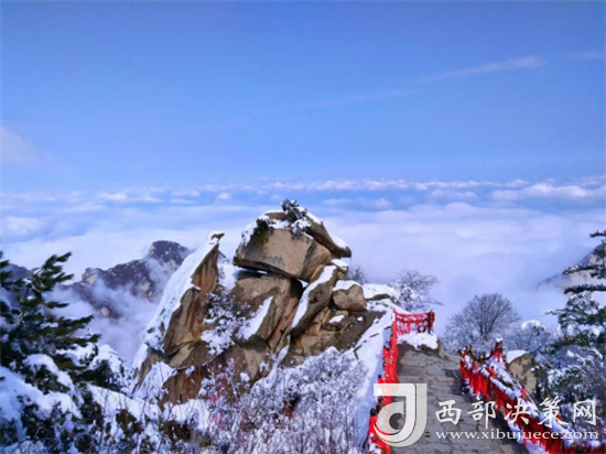 冬天的雪把華山裝扮成了銀白的世界,而且將華山的每一座山峰、每一棵松柏、每一塊石頭都變成了一個(gè)個(gè)千姿百態(tài)的雪雕藝術(shù)作品。“林海玉樹(shù)”、“雪堆玉石”、“云中雪龍”、“巖崖雪屋”、“梨花飛揚(yáng)”、“天女散花”、“紅帶玉墜”等等惟妙惟肖、栩栩如生,形成了賞心悅目的奇特景觀。矗立北峰,望山外三峰及四周,那華山的雪,層層疊疊,覆蓋著起伏的山巒,大雪漫天飛舞,鋪天蓋地,天地間一片潔白。