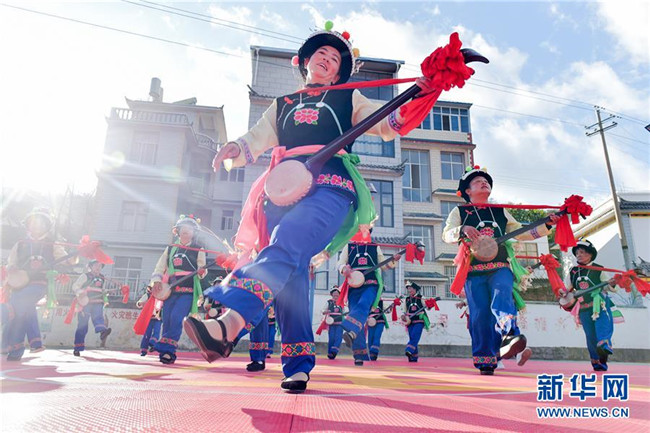 當(dāng)日,云南省大理白族自治州南澗彝族自治縣碧溪鄉(xiāng)回龍山村進(jìn)行了“鄉(xiāng)村春晚”彩排,村民們排練了自編自演的充滿(mǎn)鄉(xiāng)土氣息的精彩節(jié)目。