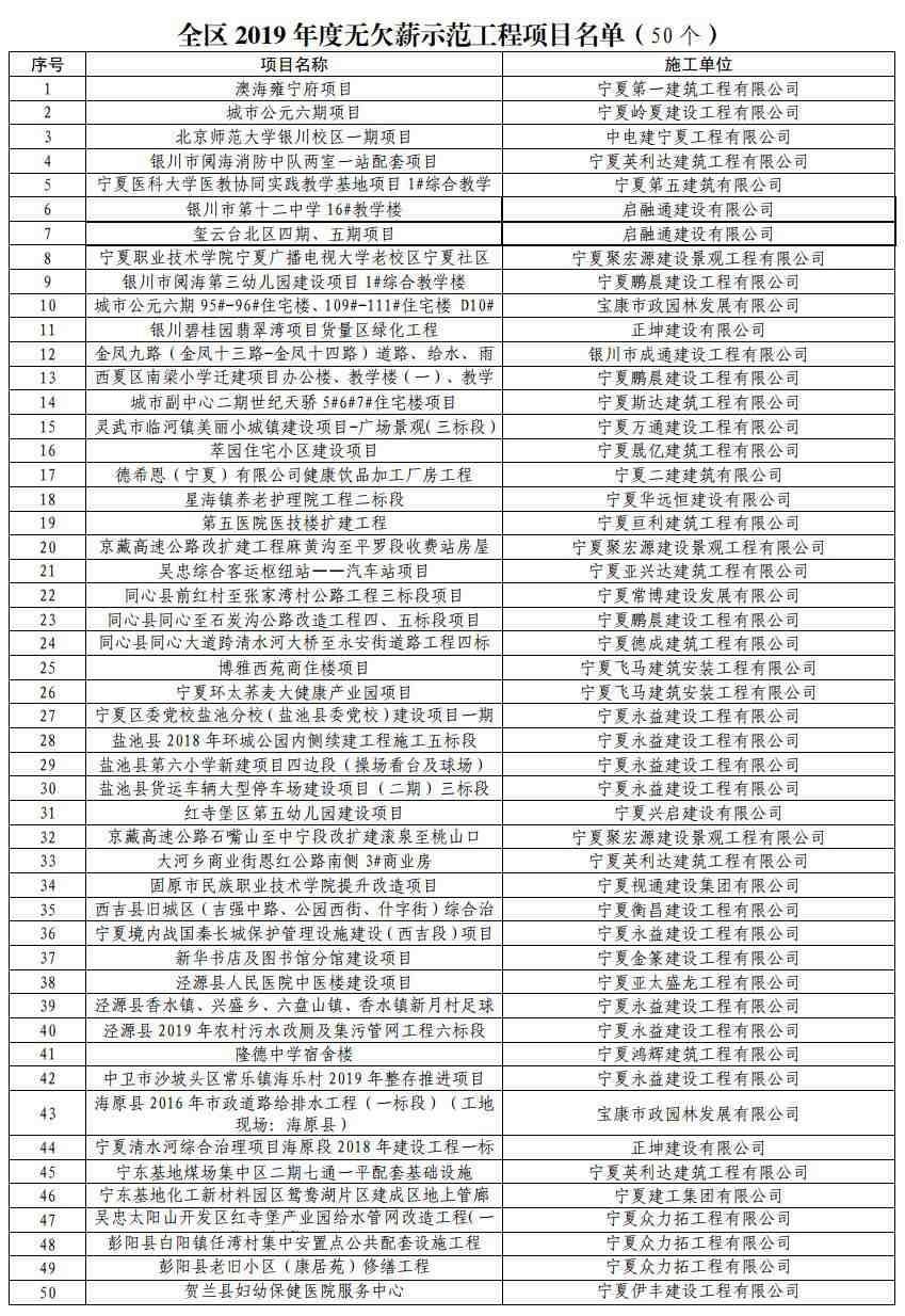 1月16日,記者從寧夏人力資源和社會保障廳獲悉,我區(qū)發(fā)布《關(guān)于2019年度全區(qū)無欠薪示范工程項目的通報》,對50個認真履行農(nóng)民工工資支付各項政策的在建工程項目給予表揚及企業(yè)誠信考核加分。