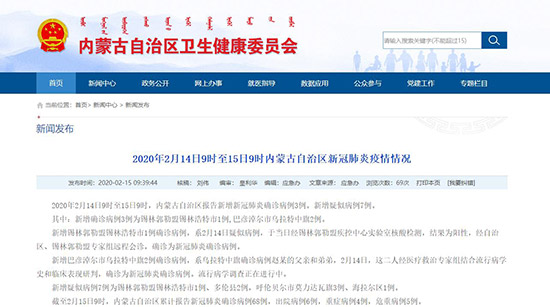 內(nèi)蒙古自治區(qū)衛(wèi)生健康委員會官網(wǎng)截圖