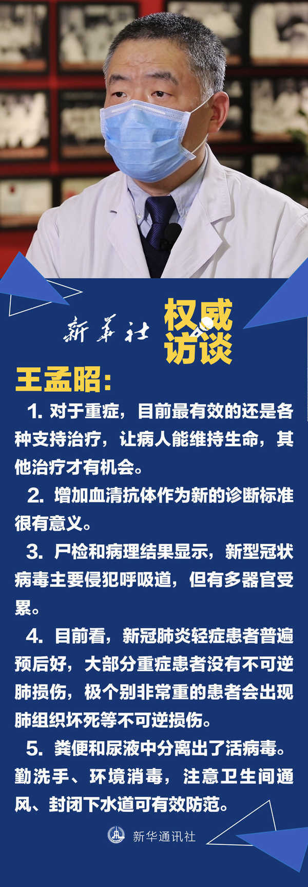 國家衛(wèi)健委近日發(fā)布《新型冠狀病毒肺炎診療方案(試行第七版)》。關(guān)于新版診療方案里加入的危重癥、重癥“預(yù)警指標”能降低病亡率嗎?血清抗體檢測能解決核酸“假陰”問題嗎?糞便和尿液里的病毒怎么防控?針對這些問題,新華社記者專訪了北京協(xié)和醫(yī)院呼吸與重癥醫(yī)學(xué)科主任王孟昭,一起來了解一下吧。