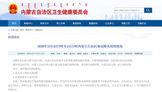 內(nèi)蒙古自治區(qū)衛(wèi)生健康委員會官網(wǎng)截圖