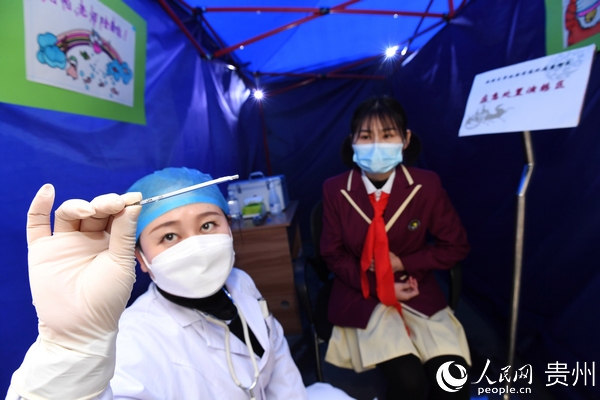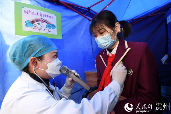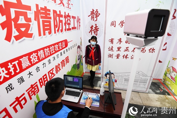 “學(xué)生進(jìn)校之前,要對(duì)學(xué)生和全體教職員工建起一人一檔的健康檔案,了解學(xué)生和他的家庭成員以及親密接觸人員的健康狀況,進(jìn)行逐一排查。到學(xué)生進(jìn)校的時(shí)候,對(duì)每一位學(xué)生,每一位教職員工都要進(jìn)行體溫檢測(cè),還要讓他們掃‘貴州健康碼’,了解學(xué)生的行蹤和健康狀況,保障學(xué)生在學(xué)校里面健康學(xué)習(xí)。”宋旗學(xué)校校長(zhǎng)陳孝勇說(shuō)。