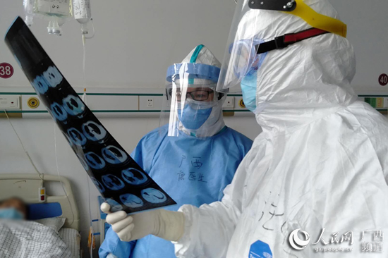 “你是劉芳,你是韓主任,我聽得出你們的聲音,謝謝你們,我知道你們是廣西的,你們是過(guò)來(lái)幫助我們的,謝謝你們。”老人家轉(zhuǎn)出重癥病區(qū)時(shí)對(duì)我們說(shuō)。這一刻,我的眼角濕潤(rùn)了,感到無(wú)比的自豪和欣慰。收獲患者的信任、讓患者重拾信心就是對(duì)我們最大的褒獎(jiǎng)。