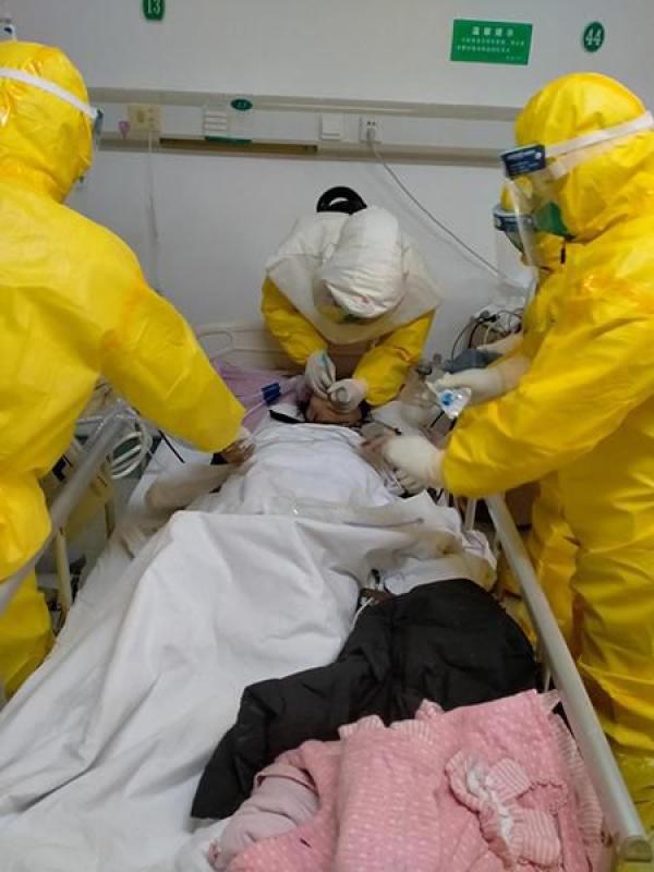 由于情況緊急,在來不及周全防護的情況下,他來到病床邊給病人插上管子,使危急情況得到緩解。