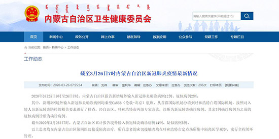 3月26日,記者從內蒙古自治區(qū)衛(wèi)生健康委員會獲悉,2020年3月25日9時至26日7時,內蒙古自治區(qū)報告新增境外輸入新冠肺炎確診病例12例、疑似病例2例。