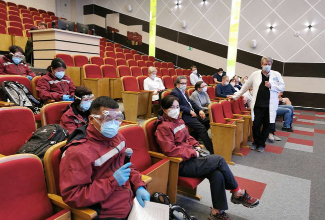 7天時(shí)間專家們已經(jīng)在當(dāng)?shù)氐?家醫(yī)院與醫(yī)學(xué)界同仁分享了經(jīng)驗(yàn),還通過視頻連線向在俄華僑華人、中資企業(yè)和留學(xué)生代表講解新冠防控科普知識,解答相關(guān)問題,并交接了防疫物資。