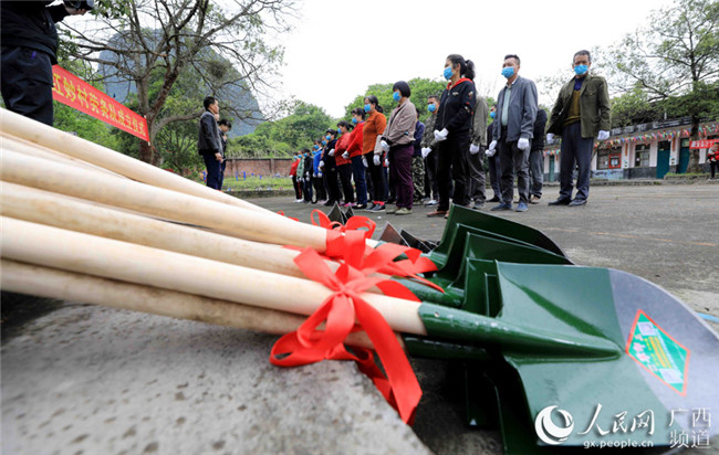 廣西柳州市融安縣沙子鄉(xiāng)紅妙村拍攝的勞務(wù)隊成立。譚凱興攝