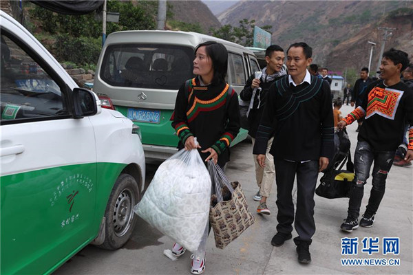 5月12日,四川省昭覺縣阿土列爾村第一批26戶貧困戶陸續(xù)下山準備搬新家。新華社記者江宏景攝