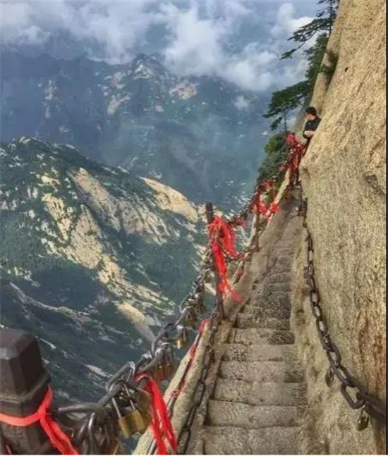 其如履薄刃,絕壑千尺的地勢(shì)使得很多游客膽戰(zhàn)心驚,其中最著名的就是韓愈大哭投書求助的故事。