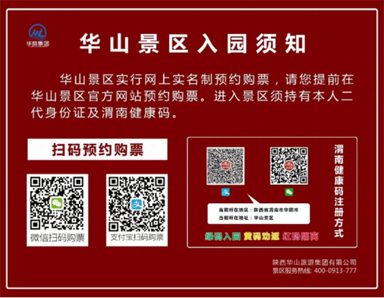 1、華山景區(qū)步行登山道(華山門)于今日(2020年5月15日)正式開放,每日最大限流1000人,運(yùn)營時(shí)間為7:00至15:00。景區(qū)門票預(yù)約政策從原來的三天可預(yù)約改為七天可預(yù)約,開放當(dāng)日售票,根據(jù)庫存上限,售完即停。