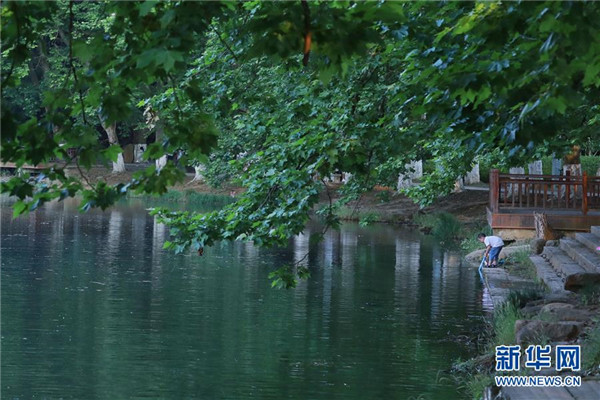 5月19日,游客在貴陽市花溪國家城市濕地公園黃金大道游玩。近日,貴州省貴陽市花溪國家城市濕地公園黃金大道綠意盎然,美景如畫。新華社記者歐東衢攝