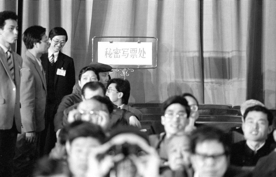 1988年4月,七屆全國人大一次會議第六次全體會議,投票選舉國家機構(gòu)領(lǐng)導(dǎo)人。圖為首次設(shè)立的秘密寫票處。