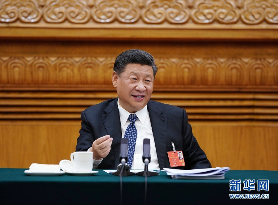 5月24日,中共中央總書記、國(guó)家主席、中央軍委主席習(xí)近平參加十三屆全國(guó)人大三次會(huì)議湖北代表團(tuán)的審議。 新華社記者 黃敬文 攝