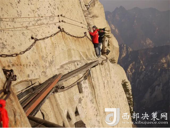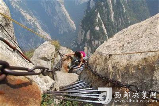 眾所周知 “自古華山一條路”是一道奇觀。這條道路或越澗跨溪,或臨崖盤(pán)山,或入崖間深谷,或走峭壁嶺脊,或平坦或曲陡,或?qū)挸ɑ颡M窄,曲折變化,跌宕起伏,把人帶入意境深邃的萬(wàn)般景象之中。道路兩旁遍布的摩崖石刻,使人仿佛走進(jìn)一個(gè)書(shū)法藝術(shù)的走廊。一步一景一傳說(shuō),更使華山沿途披上了濃厚的文化色彩。