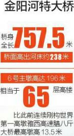 金陽(yáng)河特大橋所在地不僅峽谷深切,而且地震烈度高,需按9級(jí)設(shè)防。為讓大橋順利跨越溝谷,3個(gè)高度超過(guò)100米的墩柱,采用了四川公路設(shè)計(jì)院自創(chuàng)的鋼管混凝土組合格構(gòu)墩,減少自重的同時(shí)又增加了承載力度。其中,金陽(yáng)河特大橋6號(hào)主墩高達(dá)196米,相當(dāng)于65層高樓,比此前連續(xù)剛構(gòu)世界第一高墩雅西高速臘八斤大橋最高墩高13.5米。