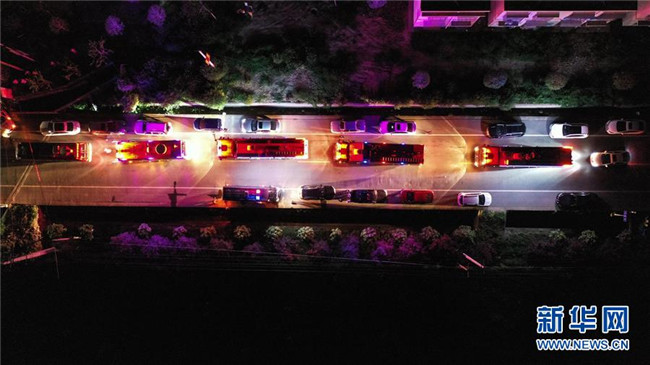 截至9日3時(shí),事故現(xiàn)場(chǎng)火勢(shì)已得到控制,但仍有明火。由于對(duì)爆炸品是否已燃完情況不明,救援人員通過(guò)無(wú)人機(jī)空中觀察,在警戒線外待命。
