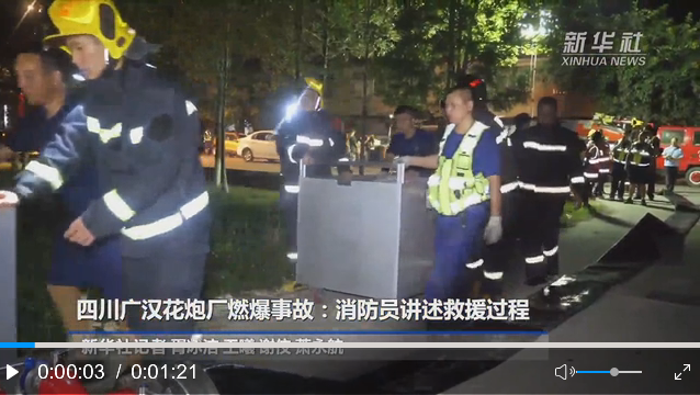 7月8日21時(shí)10分左右,廣漢金雁花炮有限責(zé)任公司南豐生產(chǎn)區(qū)廠房起火,22時(shí)25分引發(fā)燃爆,7月9日凌晨4時(shí)20分,事故現(xiàn)場(chǎng)明火全部撲滅。9日下午安排專業(yè)人員和工程車輛進(jìn)行清障,對(duì)庫(kù)存的引火線進(jìn)行轉(zhuǎn)運(yùn),徹底消除隱患。