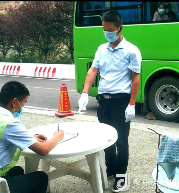 甕峪旅游專線洗臉點位于山谷中的一片開闊地,周圍無遮無擋,在中午烈日的炙烤下,洗臉點附近的地面上蒸騰著一層熱浪,客運公司職工聶鑫、柴小東、韓繼堂正堅守在這里,為游客守護(hù)平安。