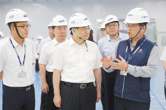 7月21日,省委書記胡和平到部分外資企業(yè)調(diào)研并召開座談會。圖為他在三星(中國)半導體公司閃存芯片二期項目現(xiàn)場聽取項目規(guī)劃介紹。 本報記者 張辰攝