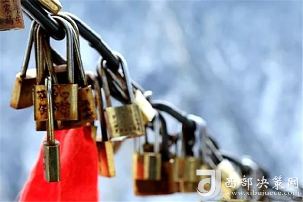 關(guān)內(nèi)、關(guān)外登山路兩側(cè)的鐵索上,情侶鎖、平安鎖,重重疊疊,紅繩彩線迎風(fēng)搖曳,筑成一道美麗的愛(ài)情風(fēng)景線。