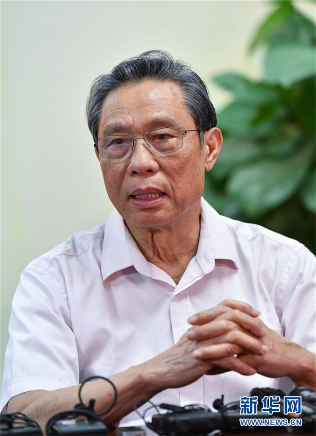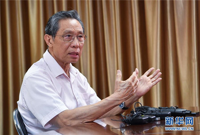 29日在廣州醫(yī)科大學(xué)附屬第一醫(yī)院,中國(guó)工程院院士、國(guó)家呼吸系統(tǒng)疾病臨床醫(yī)學(xué)研究中心主任、廣州醫(yī)科大學(xué)呼吸內(nèi)科教授鐘南山接受新華社采訪,談對(duì)香港疫情形勢(shì)的判斷,以及對(duì)防控疫情的建議。