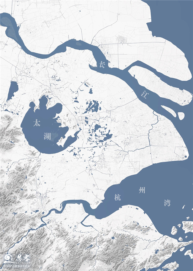 ▲太湖流域水系地勢示意圖