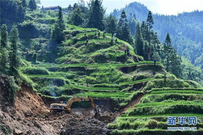 施工機(jī)械在烏英苗寨產(chǎn)業(yè)路工地作業(yè)(7月29日攝)。新華社記者 黃孝邦 攝