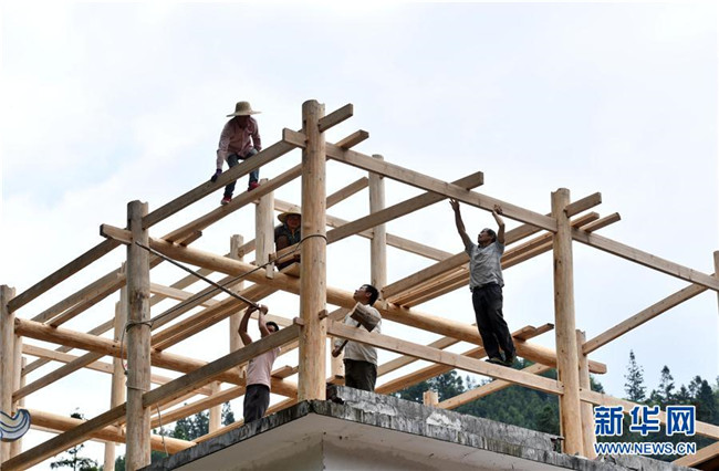 在烏英苗寨教學(xué)點,工人在改造教學(xué)樓(6月13日攝)。 新華社記者 黃孝邦 攝