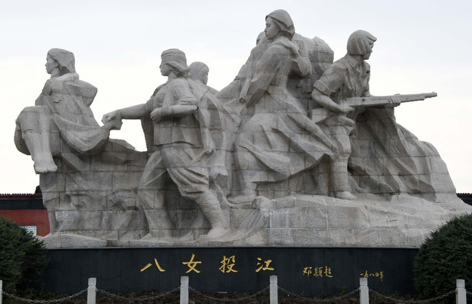 她們是東北抗日聯(lián)軍第5軍婦女團的政治指導員冷云,班長胡秀芝、楊貴珍,戰(zhàn)士郭桂琴、黃桂清、王惠民、李鳳善和被服廠廠長安順福。1938年10月,該部在牡丹江地區(qū)烏斯渾河渡口與日偽軍千余人遭遇。已行至河邊準備渡河的婦女團8名成員,為掩護大部隊突圍,毅然放棄渡河,在冷云率領(lǐng)下,分成3個戰(zhàn)斗小組,與日偽軍展開激戰(zhàn)。她們主動吸引日偽軍火力,使部隊主力得以迅速擺脫敵人的攻擊,但她們卻被敵人圍困于河邊。在背水作戰(zhàn)至彈盡的情況下,面對日偽軍逼降,女戰(zhàn)士們誓死不屈。她們毀掉槍支,挽臂涉入烏斯渾河,高唱著《國際歌》,集體沉江,壯烈殉國。犧牲時,她們年齡最大的冷云23歲,最小的王惠民才13歲。