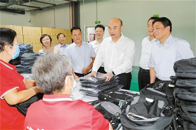 9月2日,省委書記劉國(guó)中到咸陽(yáng)市、銅川市調(diào)研脫貧攻堅(jiān)。圖為他在銅川市印臺(tái)區(qū)順金社區(qū)詢問(wèn)社區(qū)工廠貧困戶收入情況。記者 張辰攝